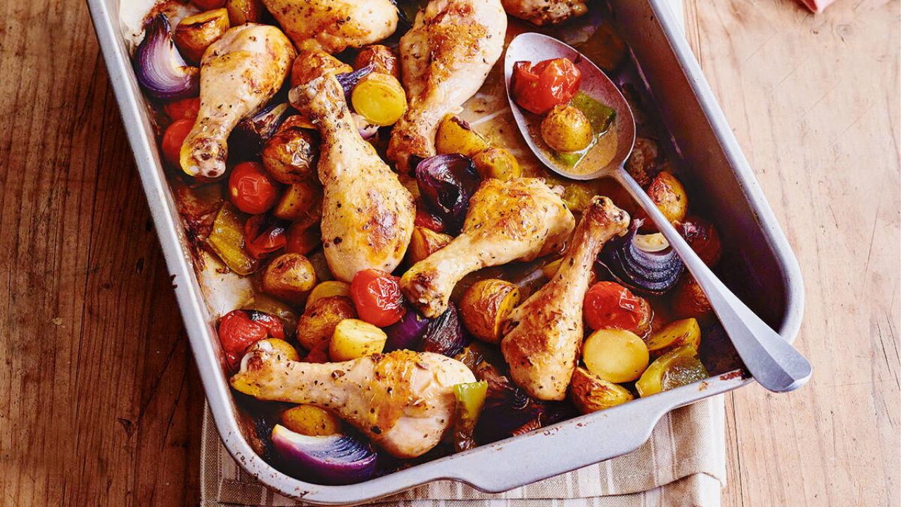 Tavuk butlarını tepsinin ortasına yerleştirin.