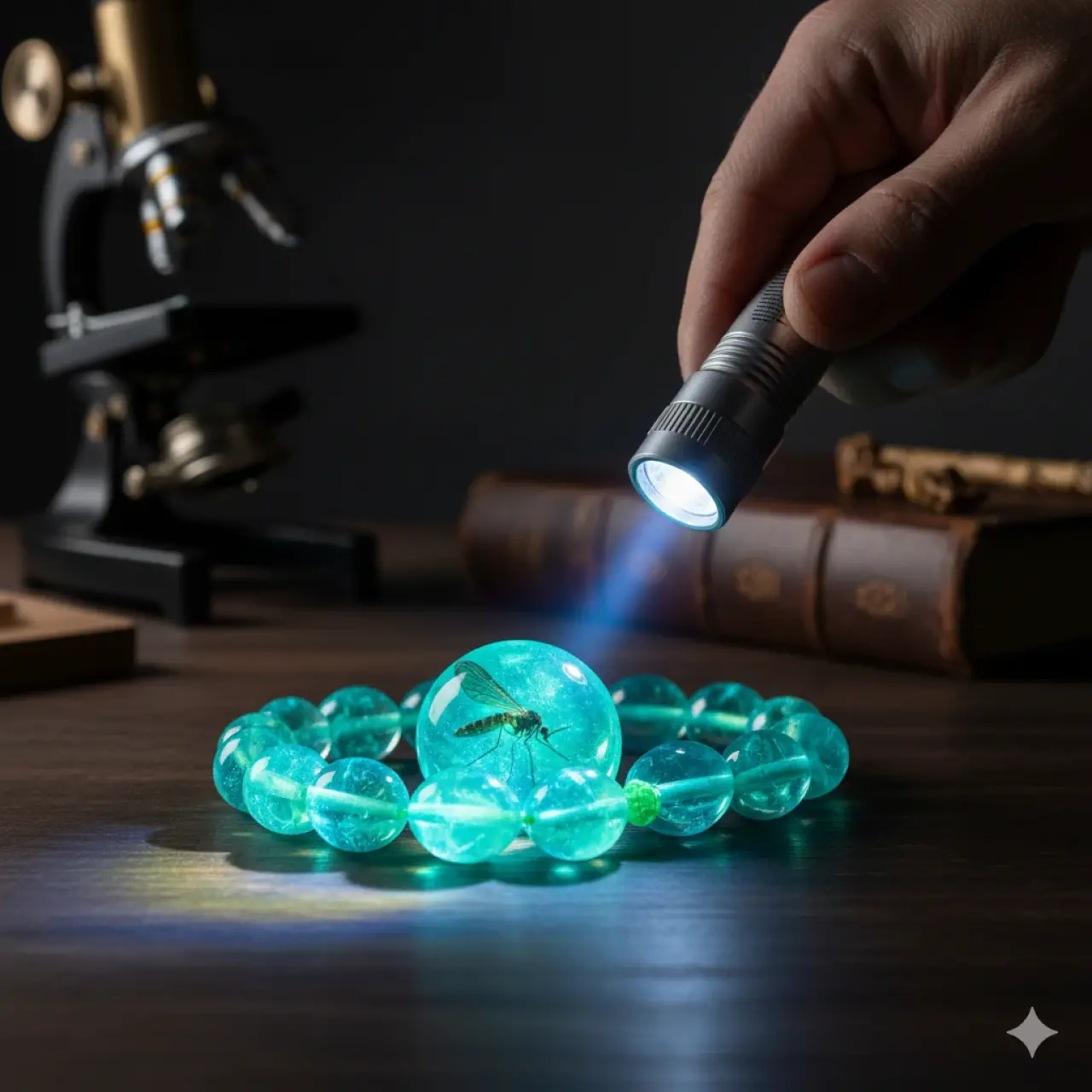 - UV Işık Tepkisi: Gerçek kehribar içeriğine sahip ateş kehribar, UV ışık altında mavi-yeşil floresan gösterir. Bu parlama derecesi, içerdiği fosilleşmiş reçine miktarına bağlıdır.