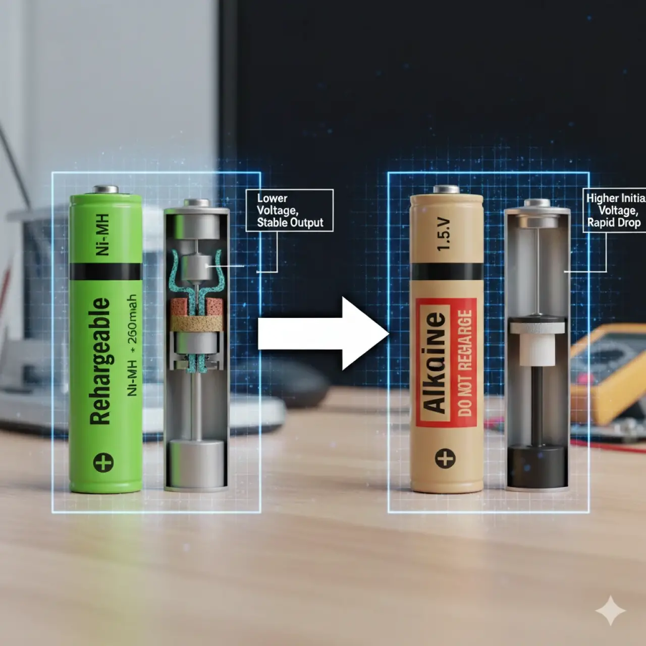 | Kriter | Şarj Edilebilir Pil (Ni-MH/Li-ion) | Tek Kullanımlık Pil (Alkalin/Çinko) |