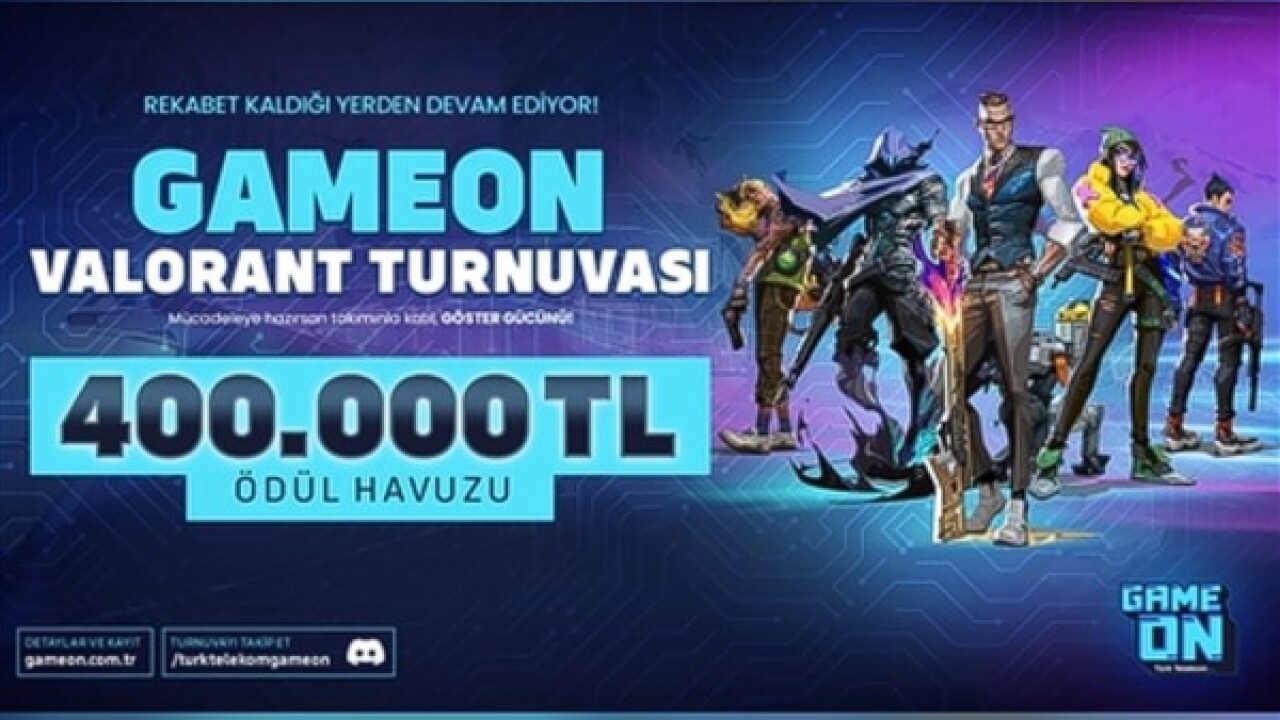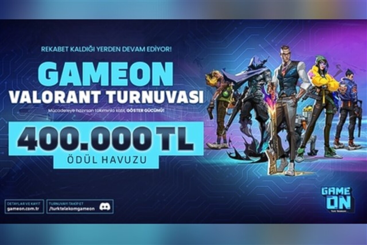 Türk Telekom’un oyun performansını internet ve oyun odaklı fırsatlarla güçlendiren markası GAMEON, oyun ekosistemine faydalar sağlamaya devam ediyor. Türk Telekom GAMEON’un organize ettiği toplam 400 bin TL ödül havuzuna sahip ‘GAMEON VALORANT Turnuvası’ kayıtları başladı. Birçok ünlü espor takımına ev sahipliği yapacak olan turnuvada final, 28 Eylül’de oynanacak. ESA Espor Arena’da büyük bir heyecana sahne olacak finale çıkmak için mücadele edecek olan takımların müsabakaları play-off aşaması itibarıyla GAMEON Twitch & YouTube ve Tivibu Spor 4 kanallarından canlı yayınlanacak.