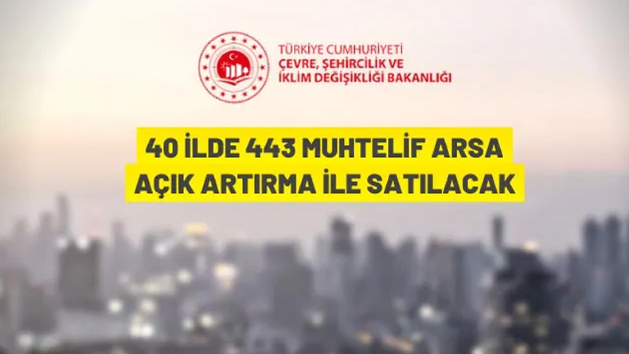 ilan.gov.tr'de yer alan ilana göre T.C. Çevre, Şehircilik ve İklim Değişikliği Bakanlığı, 40 ilde 443 muhtelif arsayı 26 ve 27 Ocak 2023 tarihlerinde düzenlenecek ihalede açık artırma ile satacak.