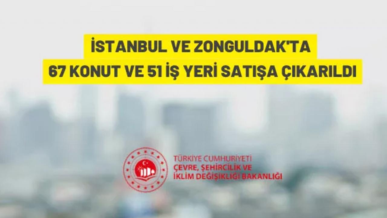 ilan.gov.tr'de yer alan ilana göre Çevre, Şehircilik ve İklim Değişikliği Bakanlığı, İstanbul Zeytinburnu ve Zonguldak Merkez'de 67 konut ve 51 iş yerini açık artırma ile satışa çıkardı.