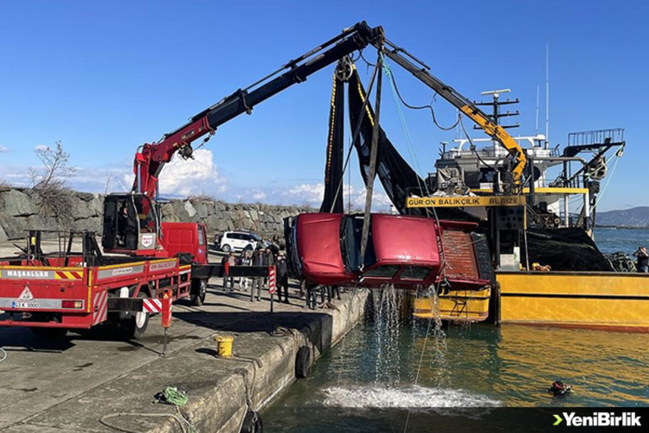 Yeni Birlik Gazetesi Rize'de fırtınada denize sürüklenen kamyonet vinç yardımıyla çıkartıldı