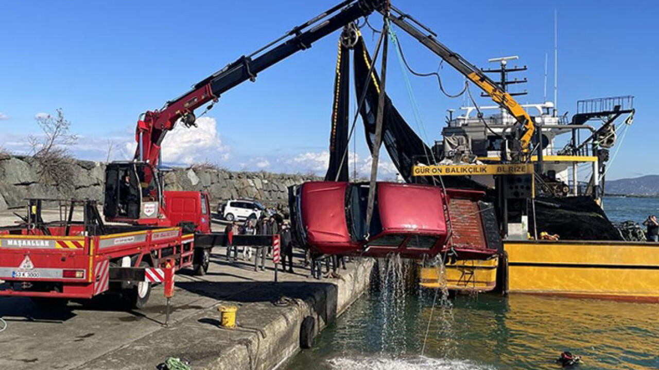 Rize'de fırtınada denize sürüklenen kamyonet vinç yardımıyla çıkartıldı