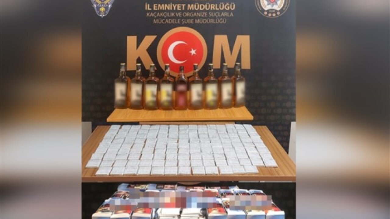Çalışmalarda 13 kilo tütün, 24 bin 900 adet makaron, 957 adet elektronik sigara tütünü, 180 paket kaçak sigara, 35 litre sahte içki ve 14 şişe kaçak içki ve 1 adet araç ruhsatı ele geçirildi.