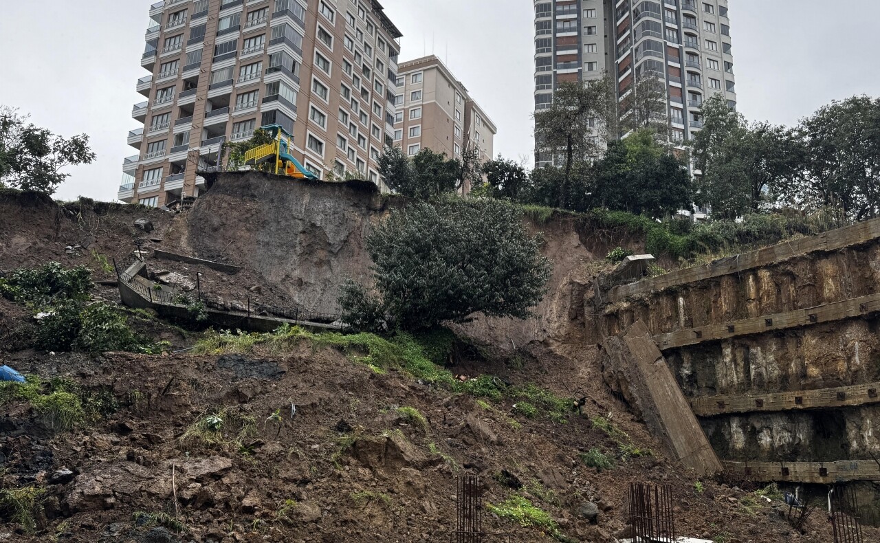 Kentte dün gece saatlerinden itibaren etkili olan şiddetli yağış nedeniyle Fener Mahallesi Yağmur Sokak'taki Ceylan Saray Sitesi'nin ön kısmındaki toprak kaydı.