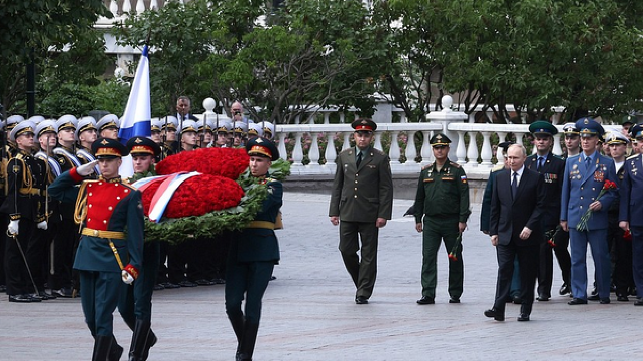 Putin, Büyük Vatanseverlik Savaşı'nın başlangıcının 83. yıldönümünde, Nazi işgalcilere karşı savaşlarda hayatını kaybedenlerin anısını Kremlin Duvarı yanındaki Belirsiz Askerin Mezarı'na çelenk koydu.