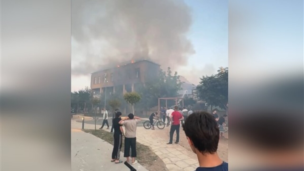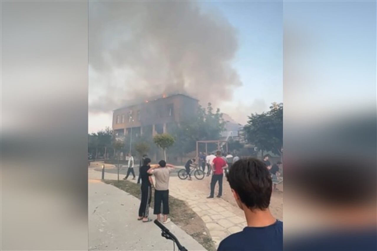 Sinagogun ateşe verildiği bildirildi. Sosyal medyada binanın alevler içinde kaldığını gösteren video ve fotoğraflar yayınlandı.