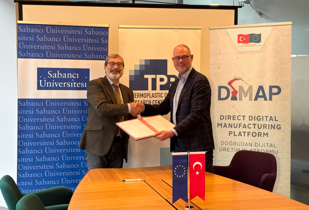 Sabancı Üniversitesi, ileri malzeme teknolojilerinde sürdürülebilir üretime yönelik çözümleri ileriye taşıyacak bir iş birliğini hayata geçirdi. Sabancı Üniversitesi Tümleştirilmiş Üretim Teknolojileri Araştırma ve Uygulama Merkezi (SU-IMC) ile Thermoplastic Composite Research Center (TPRC) arasında imzalanan Mutabakat Zaptı (MoU), Üniversite'nin global araştırma kapasitesini artıracak ve kompozit, eklemeli imalat ve nanoteknoloji alanlarındaki liderliğini pekiştirecek.