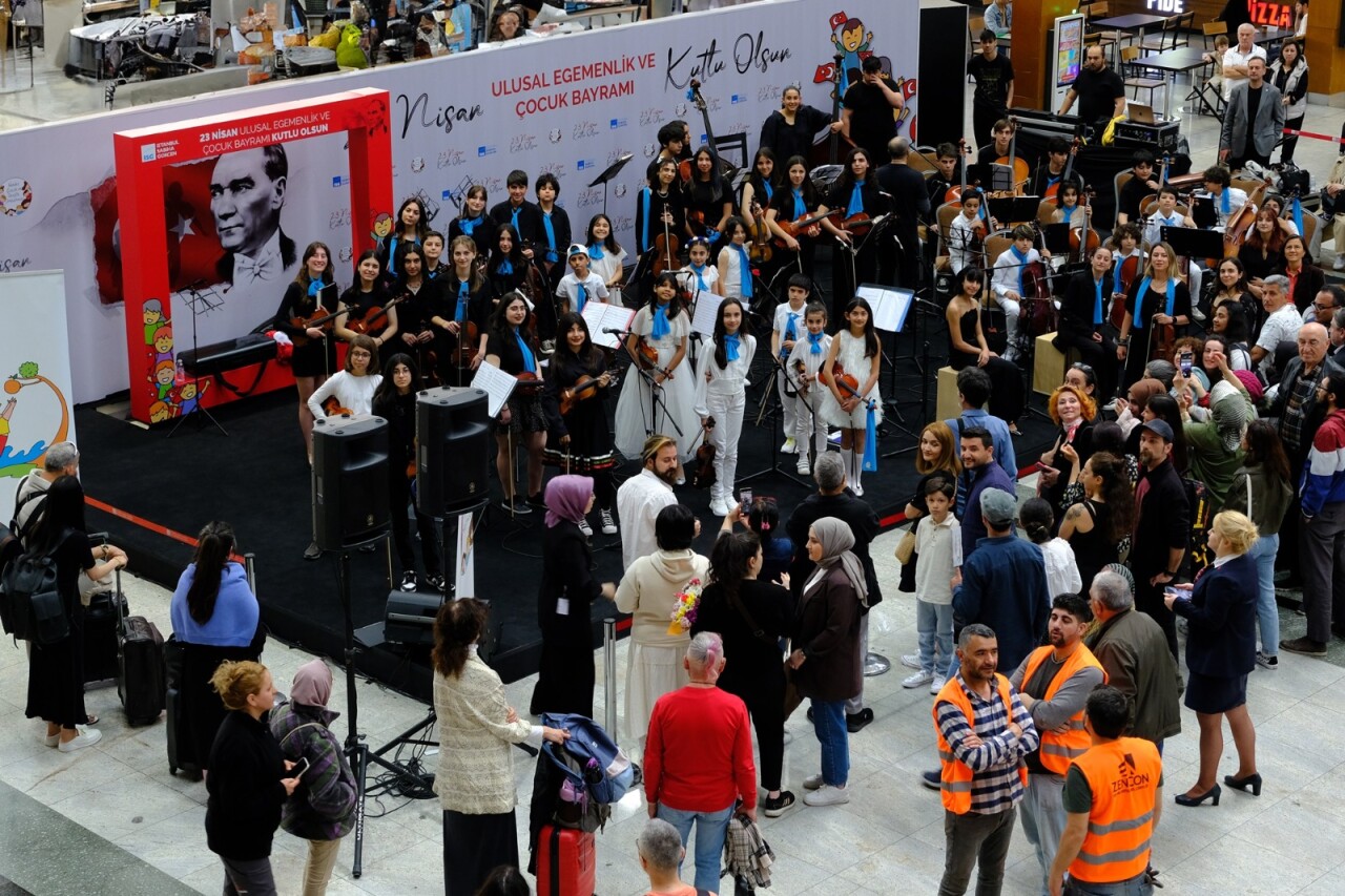 İstanbul Sabiha Gökçen (ISG) Uluslararası Havalimanı’nda 23 Nisan kutlamasına, çocuk müzisyenlerin muhteşem performansı damga vurdu. Adalar Çocuk ve Gençlik Orkestrası’ndan 45 öğrencinin katılımıyla gerçekleştirilen mini konsere yolcular ellerinde Türk bayraklarıyla eşlik etti.
