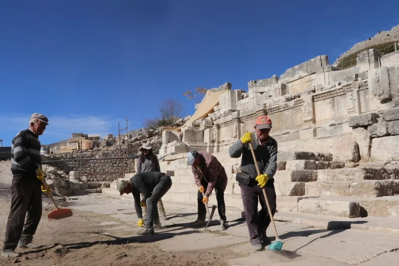 UNESCO Dünya Mirası Geçici Listesi'ne yer alan geçmişi milattan önce 3000 yılına dayanan Sagalassos Antik Kenti'nde 2010'da hizmete açılan 1844 yıllık Antoninler Çeşmesi'nin ardından 2002'deki kazılarda bulunan Roma İmparatoru Hadrianus'a ithafen yaptırılan 1892 yıllık Hadrianus Çeşmesi gün yüzüne çıkarılıyor.
