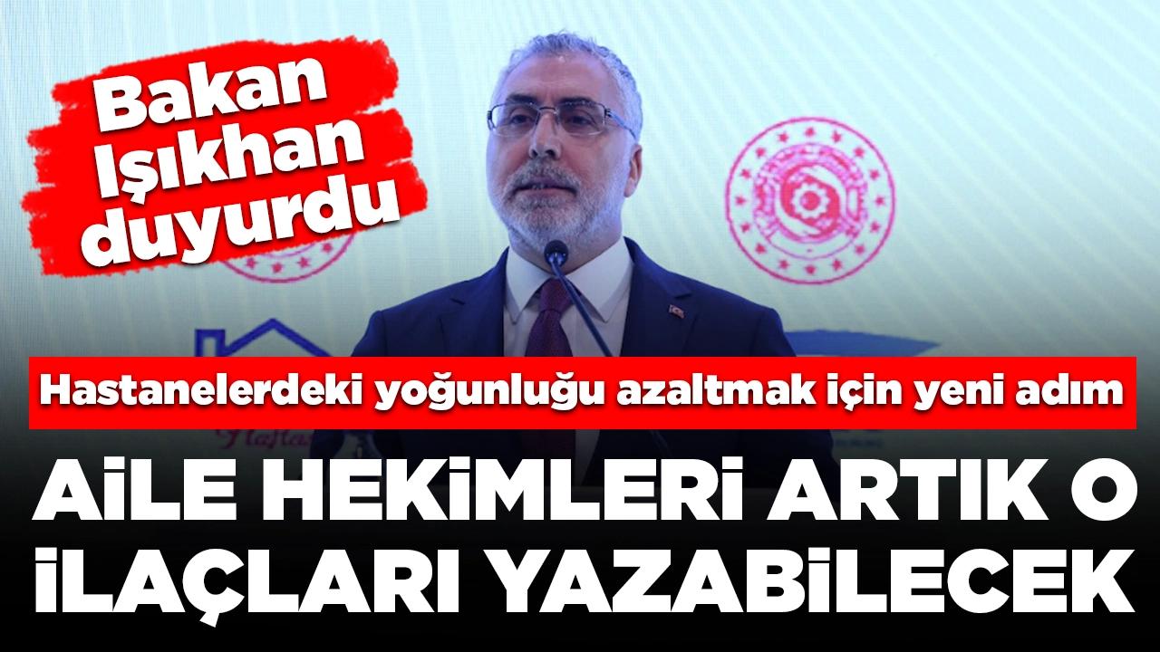 Çalışma ve Sosyal Güvenlik Bakanı Vedat Işıkhan, "Hastanelerdeki yoğunluğu azaltmak, raporlu hastalarımızın işini kolaylaştırmak için aile hekimlerinin reçete edebildiği ilaçların sayısını artıran yeni bir düzenleme yapıyoruz" dedi.