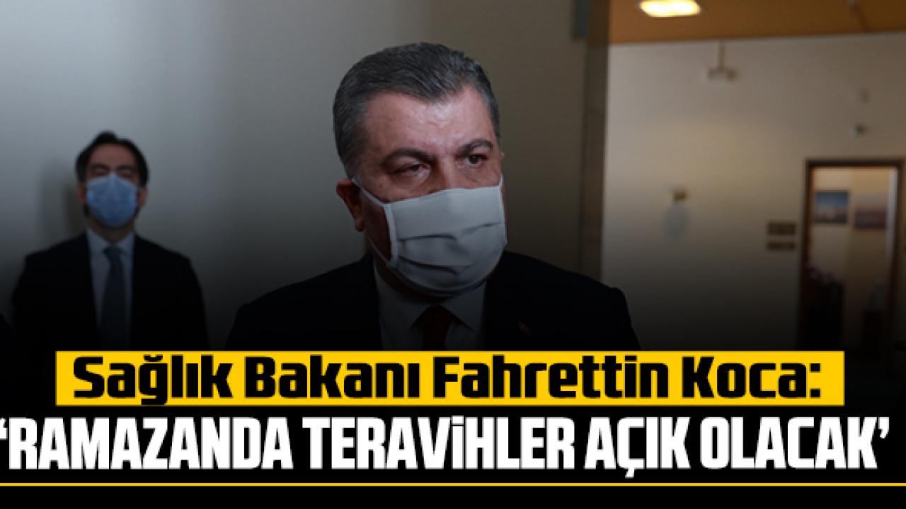 Bakan Koca, ramazan ayında uygulanacak koronavirüs tedbirleri ile ilgili olarak “Teravihler kapalı olmayacak. Bu noktada hassasiyet gösterilerek, tedbirler alınarak kılınmaya devam edilecek. Toplu organizasyonlar iftar ve sahur gibi toplanmalar Cumhurbaşkanımızın açıkladığı şekliyle yasaklandı” dedi