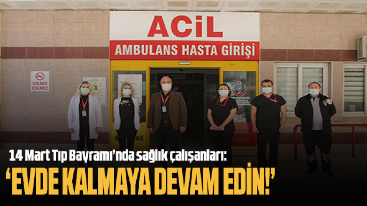 Koronavirüs bir yandan can almaya devam ederken, 14 Mart Tıp Bayramı vesilesiyle sağlık çalışanlarına mesajlar iletiliyor. Tıp Bayramı'nda da görev başında olan sağlık çalışanları ise 'Evde kalmaya devam edin' mesajı verdi.