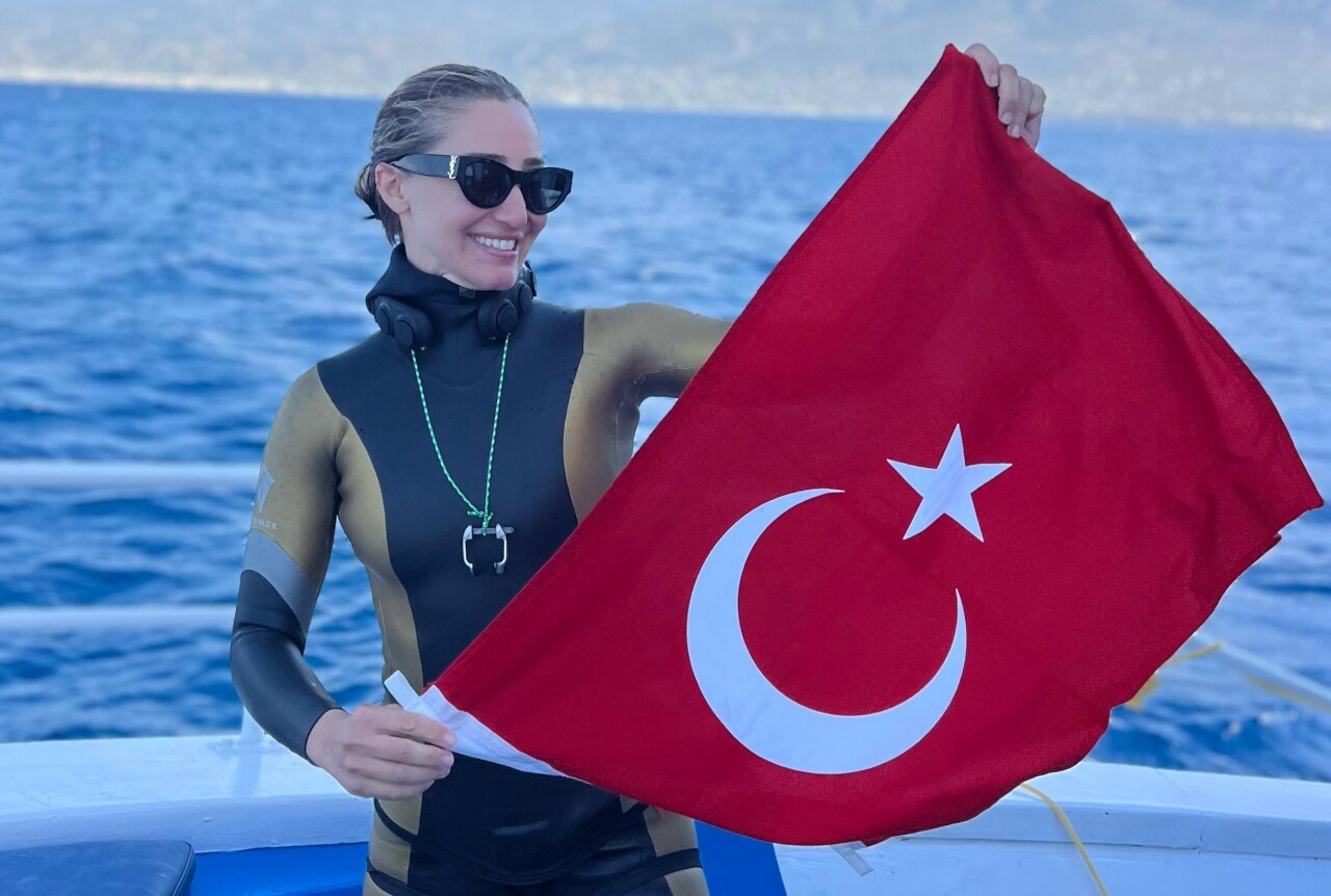 Şahika Ercümen, dün de paletsiz ip destekli kategoride 82 metreye dalış yaparak Türkiye rekoru kırmıştı.