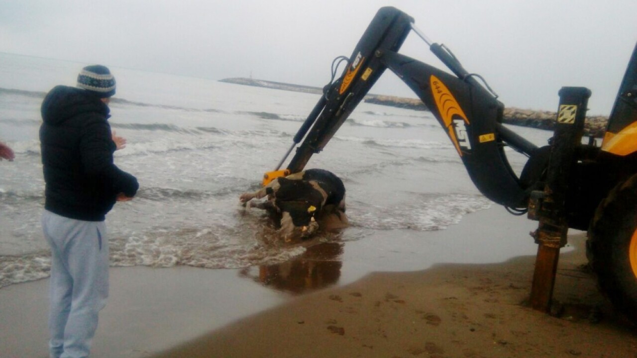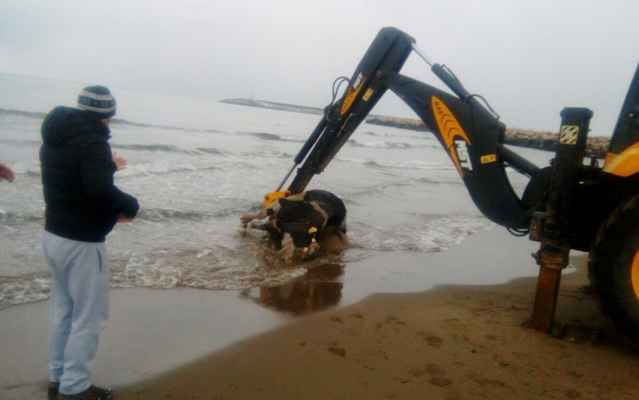 Kastamonu’nun Cide ilçesinde sahile ölü inek vurdu.