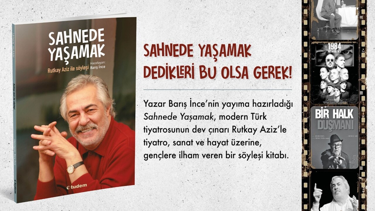 Atatürk'ü oynama onuruna erişmiş, onlarca oyun sahnelemiş, nice ödüller almış, binlerce kez sahneye çıkmış Türk tiyatrosunun dev çınarı Rutkay Aziz'in yarım asrı aşan sanat yaşamı çok özel bir kitapta toplandı. Yazar Barış İnce’nin uzun ve titiz bir hazırlık sürecinin ardından okurların beğenisine sunduğu Sahnede Yaşamak - Rutkay Aziz ile söyleşi isimli yeni çalışması Tudem Yayınları etiketiyle raflara yerleşti.