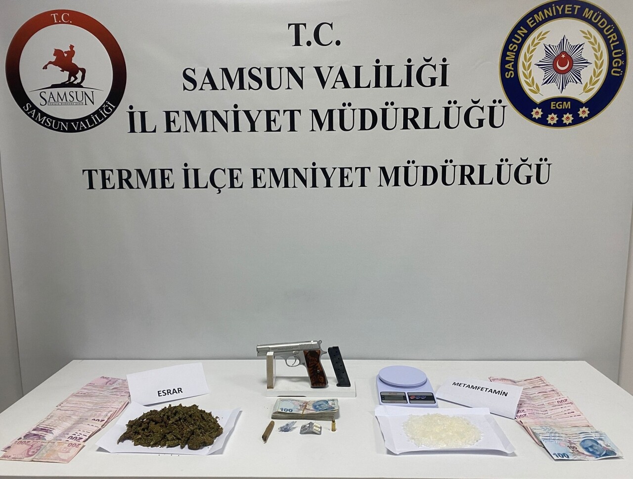 Firari hükümlünün üzerinde yapılan aramada ise ruhsatsız tabanca, 131 gram sentetik uyuşturucu, 100 gram esrar, esrarlı sigara, 5 sentetik ecza hapı, hassas terazi ve uyuşturucu madde ticaretinden elde edildiği değerlendirilen para ele geçirildi.