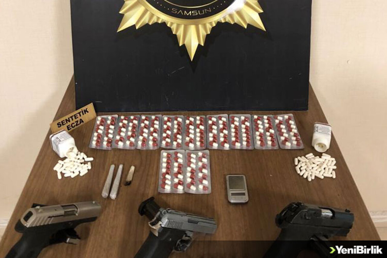 İl Emniyet Müdürlüğü Narkotik Suçlarla Mücadele Şubesi ekiplerinin sokak satıcılarına yönelik çalışmaları kapsamında, İlkadım ilçesinde gerçekleştirilen operasyonda 350 kapsül sentetik ecza hapı, 3 ruhsatsız tabanca, hassas terazi, 3 esrarlı sigara ile 5 fişek ele geçirildi.