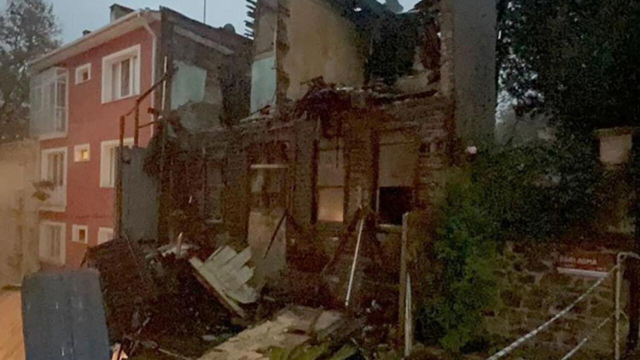 Sarıyer'de 3 katlı metruk ahşap bina çöktü