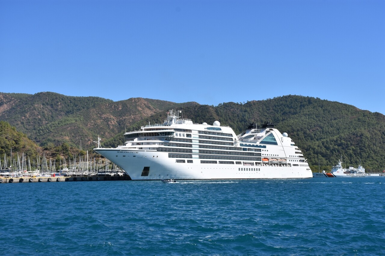 Antalya Limanı'nın ardından rotasını Marmaris'e çeviren 210 metre uzunluğundaki yolcu gemisi, Marmaris Limanı'nın büyük iskelesine yanaştırıldı.