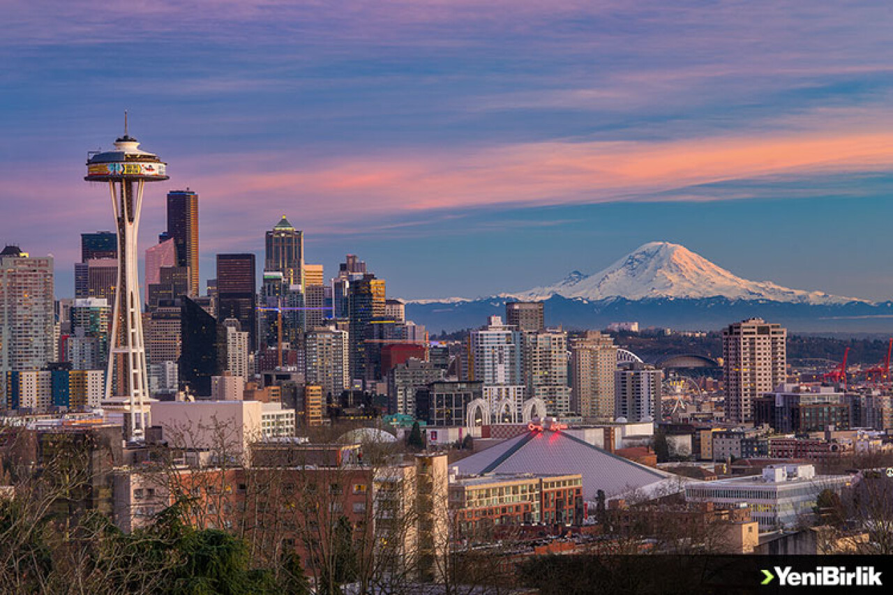 Seattle siluetinin değişmez parçası Rainier Dağı