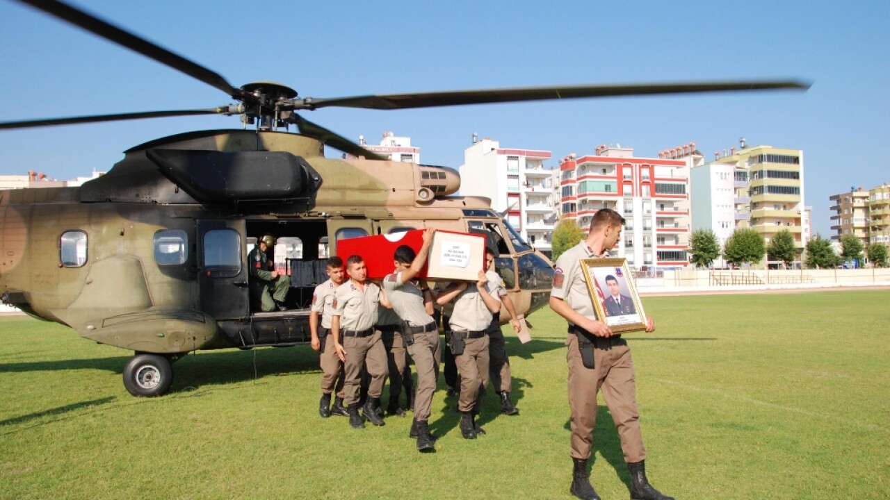 Batman’ın Kozluk ilçesinde Bekirhan Belde Jandarma Karakolu önünde yapılan bombalı saldırıda ağır yaralanan ve tedavi gördüğü GATA’da şehit olan Jandarma Uzman Çavuş Ali Gülnar’ın naaşı askeri helikopterle memleketi Mersin’in Silifke ilçesine getirildi.