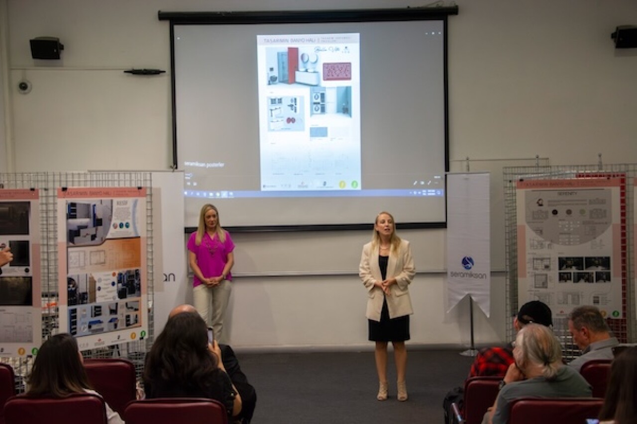 Açılış konuşmasını İzmir Ekonomi Üniversitesi Güzel Sanatlar Fakültesi Dekanı Prof.Dr. Ender Yazgan Bulgun’ un yaptığı ödül töreninde, jüri üyelerinden İç mimarlık ve Çevre Tasarımı Bölüm Başkanı Doç.Dr. Emre Ergül ve Endüstriyel Tasarım Bölüm Başkanı Dr. Öğretim Üyesi A. Can Özcan ve Seramiksan Pazarlama Müdürü Görkem Helvacıoğlu katılımcıların sunduğu projeler hakkında görüşlerini paylaştı.