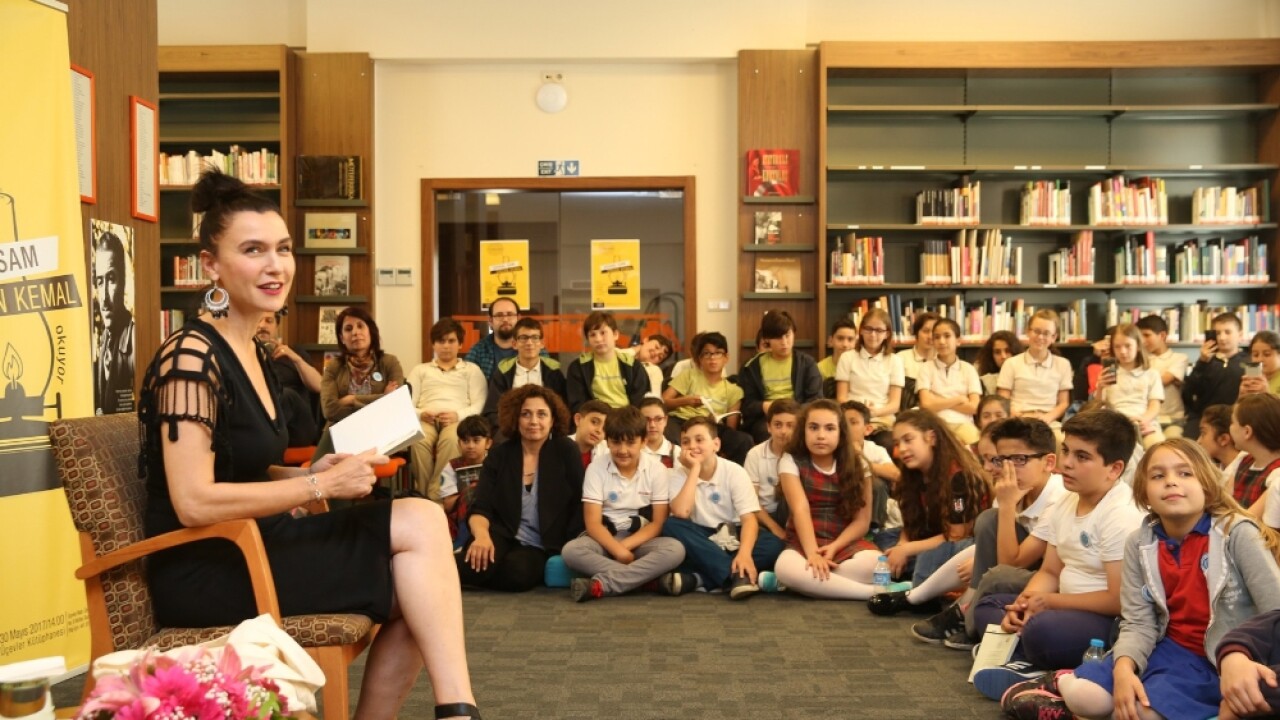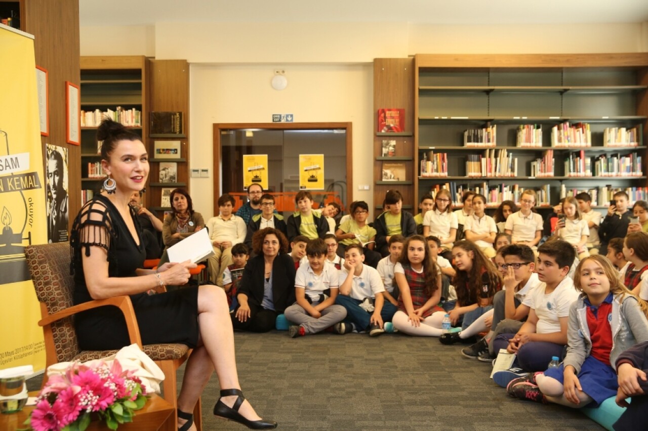 Ünlü sanatçı Şevval Sam, Nilüfer Belediyesi'nin düzenlediği etkinlikte bir araya geldiği öğrencilere, yazar Orhan Kemal'in 'Elli Kuruş Çikolata' isimli kitabından öyküler okudu.