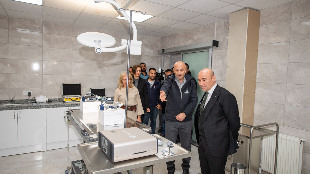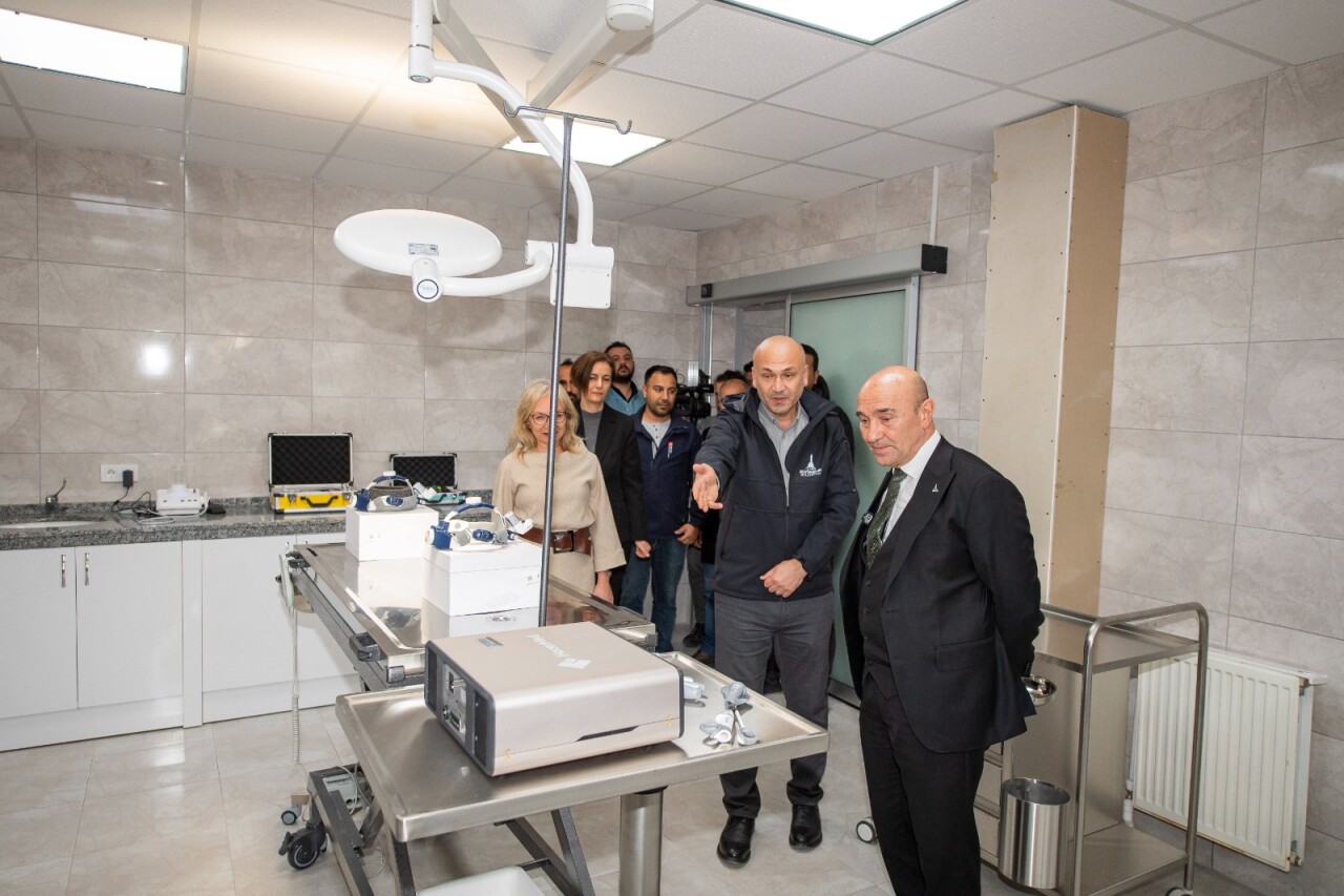 Başkan Tunç Soyer, “Çok ciddi bir yatırımla, sadece İzmir’in değil Türkiye’nin en büyük hastanesini hizmete açacağız. Olağanüstü yüksek standartta hastane ekipmanı ile donatıldı. Röntgen, ultrason, ameliyathane, kuvöz gibi her türlü eksiğin tamamlandığı bir hastaneyi kente kazandırıyoruz. İzmirlilerin içi rahat etsin, sokak hayvanlarımıza 7/24 hizmet verecek olağanüstü donanımlı teknik ekibimiz var. Son derece yüksek standartta hastanemiz var. Onları doyuracak sağlıklı lezzetli mamalarımız var.” dedi.