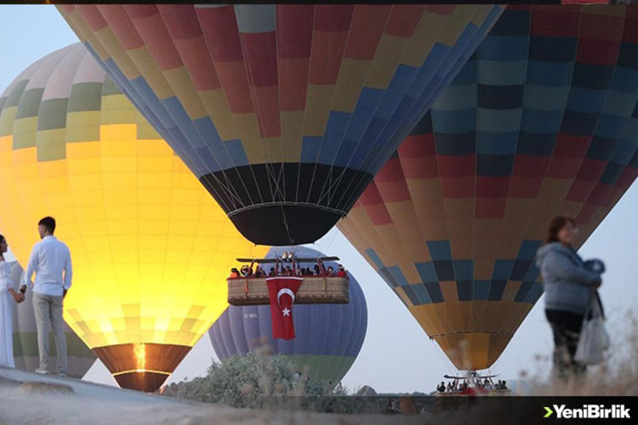 Yeni Birlik Gazetesi Sıcak hava balonları Kapadokya semalarında Türk bayraklarıyla süzüldü