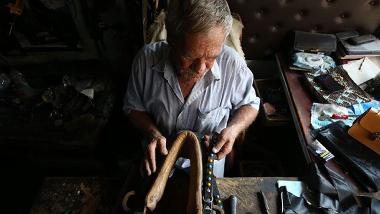 Balıkesir'in Sındırgı ilçesinde yaşayan 76 yaşındaki Nurettin Yılmazer, dedesinden kalma dükkanında saraçlık mesleğini sürdürmeye çalışıyor.