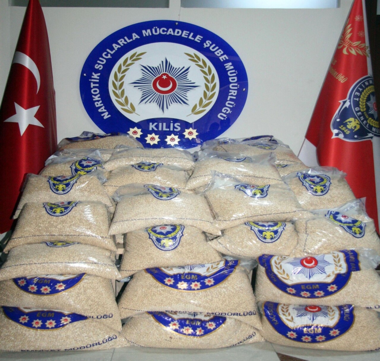 Kilis’in Öncüpınar Sınır Kapısı’nda durdurulan Suriye plakalı bir tırda toplam 499,3 kilogram sentetik uyuşturucu madde ele geçirilmesi ile ilgili olarak gözaltına alınan Suriye uyruklu tır şoförü M.S. tutuklandı.