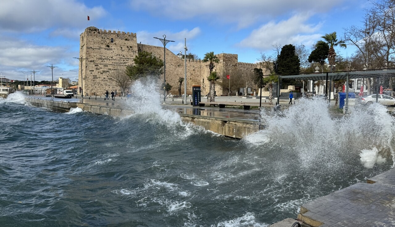 Kentte iki gündür etkisini sürdüren ve saatteki hızı 37 kilometreye ulaşan rüzgar nedeniyle, kentin güney sahilinde dalga boyu 3 metreyi buldu.