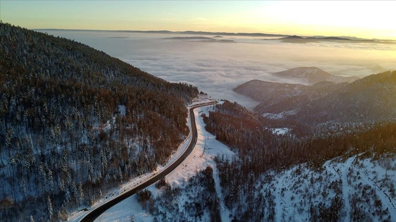 Kentin önemli turizm alanlarından Akgöl Tabiat Parkı'nı da bünyesinde barındıran Çangal Dağı, kar yağışıyla birlikte beyaz örtüyle kaplandı.