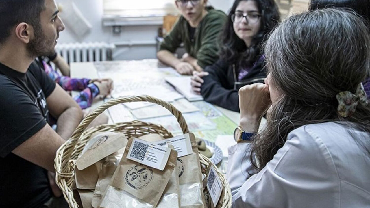MUN Genç Şirketi proje danışmanı edebiyat öğretmeni Zehra Çınar Boy ve şirket yöneticisi öğrenciler, üretim sürecini AA muhabirine anlattı.