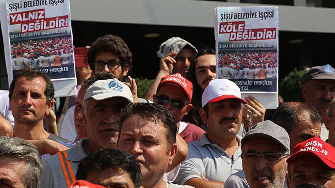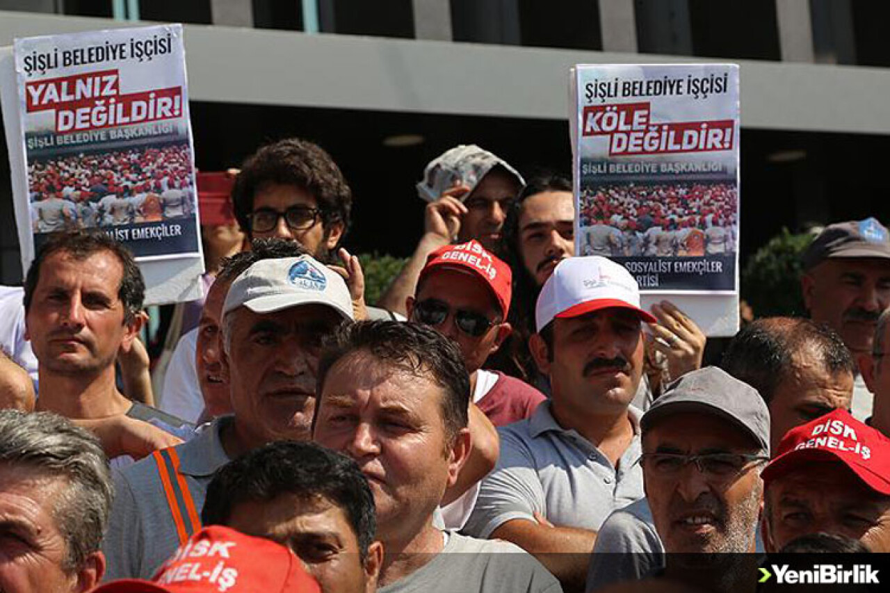 DİSK'e bağlı Genel-İş üyesi bir grubun, Şişli Belediyesi önündeki iş bırakma eylemi sürüyor.