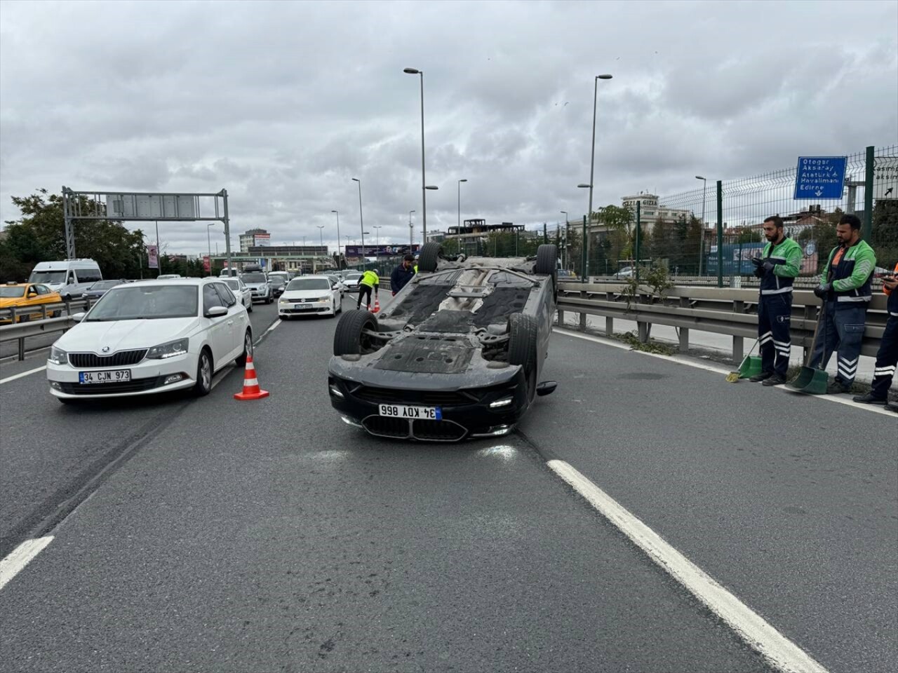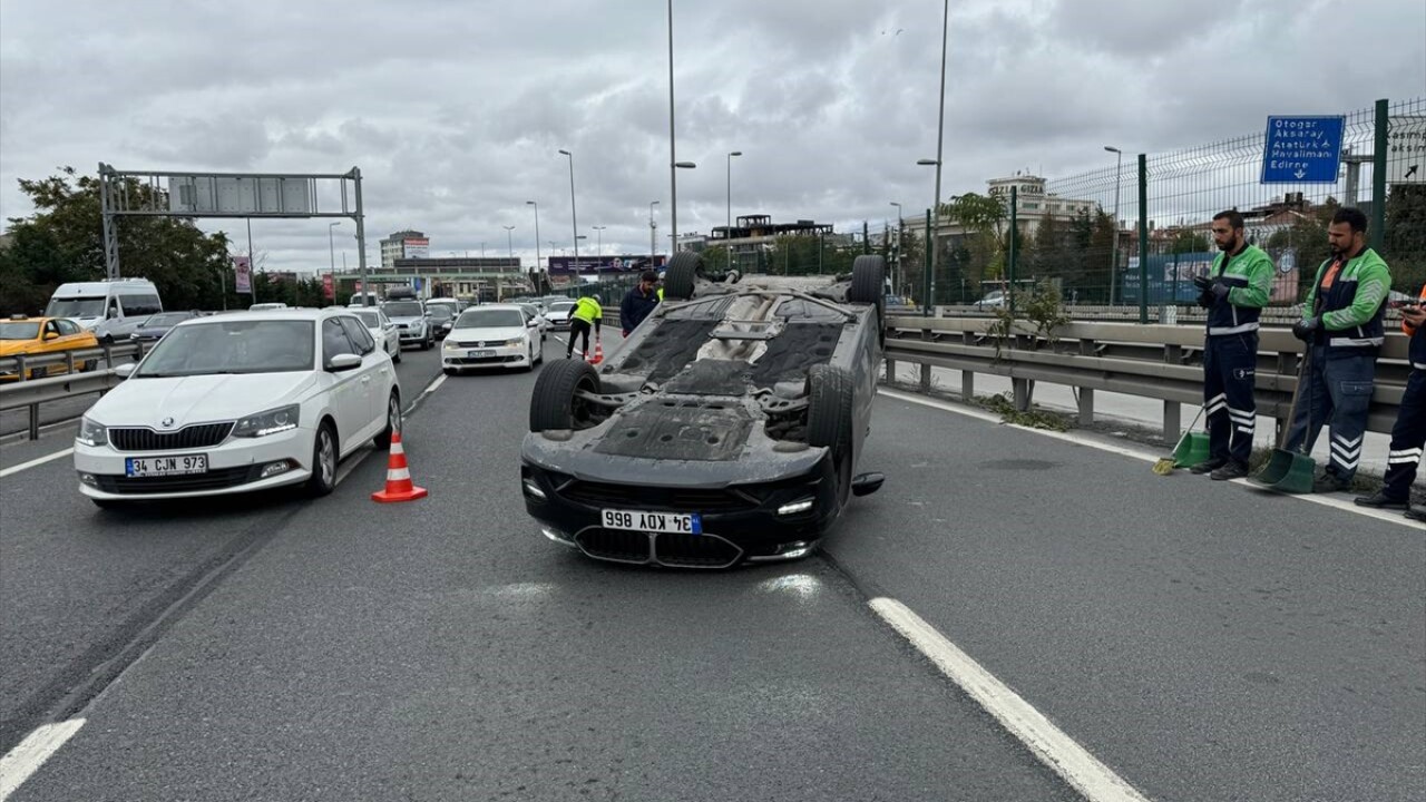 Sürücüsünün ismi henüz öğrenilemeyen 34 KDY 866 plakalı otomobil, Çağlayan Adliyesi mevkisinde bariyerlere çarparak takla attı.