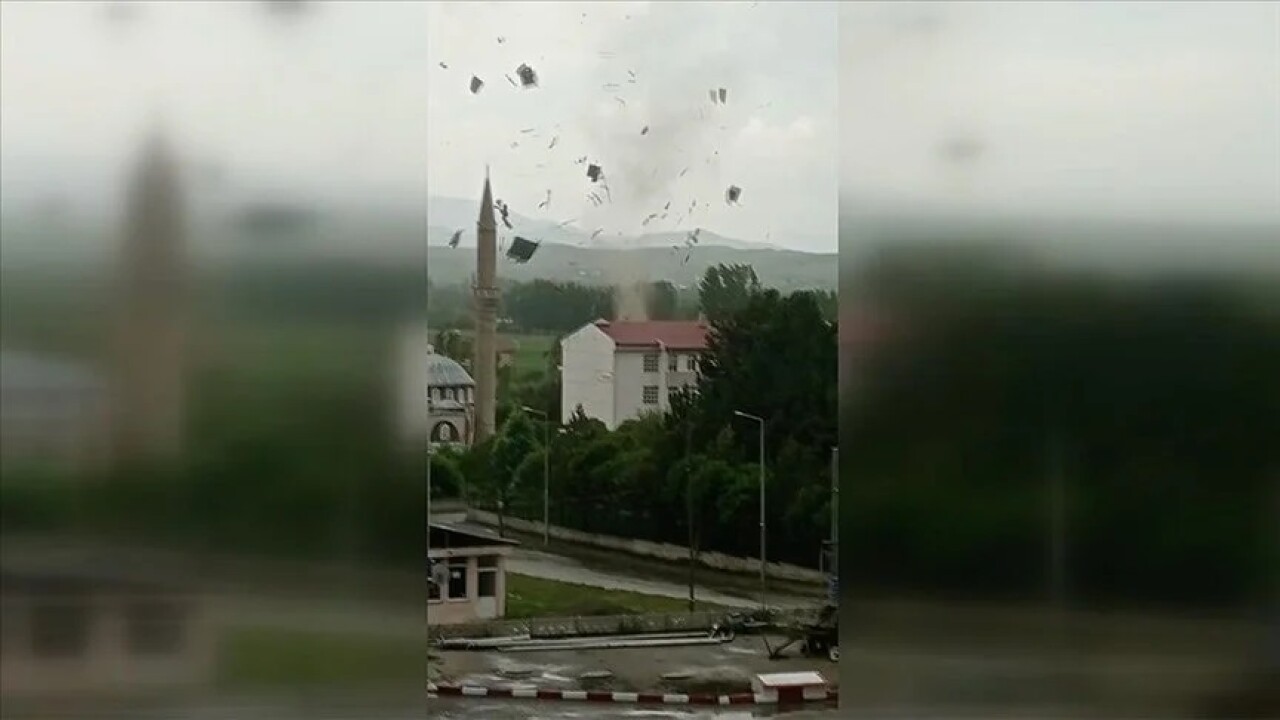 Hortumun ilçedeki binaların çatısındaki parçaları savurma anı vatandaşların cep telefonu kamerasına yansıdı.
