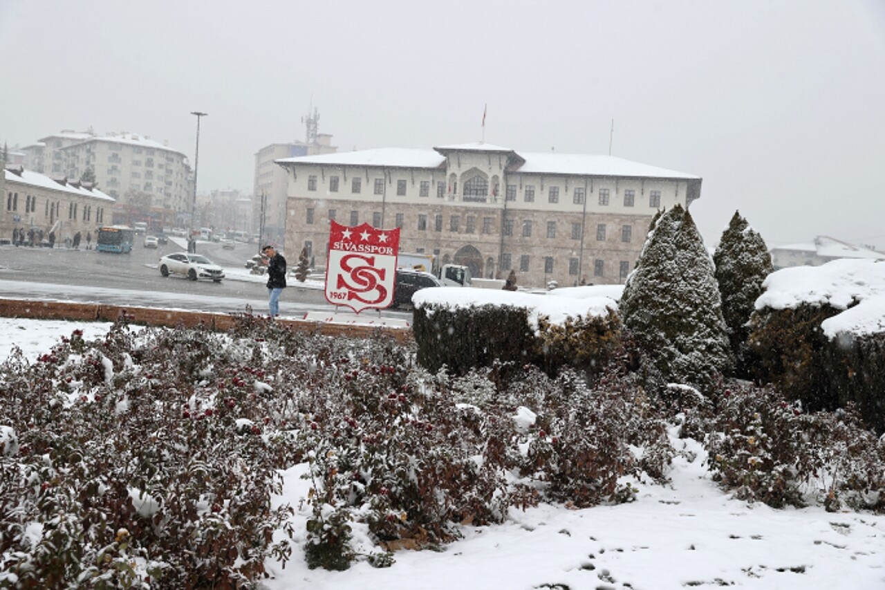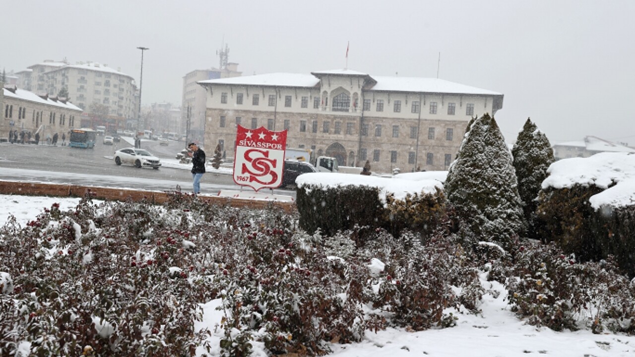 Kar yağışıyla Selçuklu ve Osmanlı dönemine ait tarihi yapıların bulunduğu Cumhuriyet Meydanı da ayrı güzelliğe büründü.