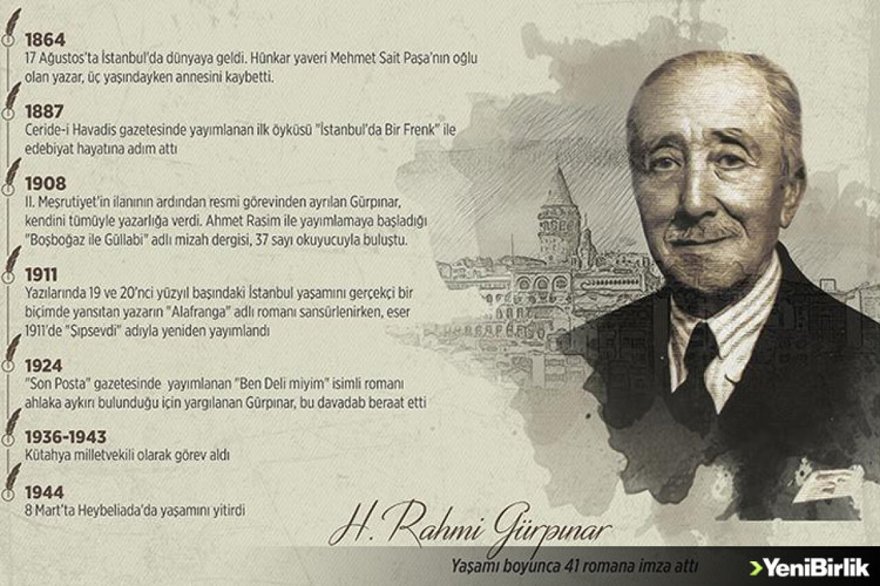 Yaşamı boyunca çok sayıda esere imza atan gazeteci, yazar Hüseyin Rahmi Gürpınar, doğumunun 153. yıl dönümünde anılıyor.