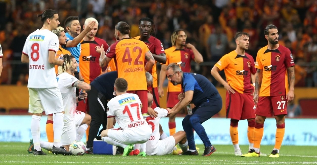 45’te hava topu mücadelesinde Abdülkerim Bardakcı, Joao Figueiredo’nun yüzüne dirseğiyle yaptığı müdahale sonrasında ikinci sarı karttan kırmızı kart görerek oyun dışında kaldı. Galatasaray ikinci yarıda 10 kişi mücadele etti. 71’de Ertuğrul Ersoy’un Dries Mertens’e ceza alanı içinde kayarak yaptığı müdahale sonrasında hakem Yaşar Kemal Uğurlu penaltı noktasını gösterdi. 73’te penaltı kaçtı! Bafetimbi Gomis’in sağ ayağıyla yaptığı vuruşta kaleci Günay Güvenç soluna giden topu uzanarak çelmeyi başardı. 90+1’de Galatasaray, Stelios Kitsiou’nun kendi kalesine attı golle maçın son bölümlerinde 2-1 öne geçti. Sacha Boey’in sürüklediği atakta Yunus Akgün’ün ceza alanı içinden yaptığı vuruşta Günay Güvenç’ten dönen topa Haris Seferovic şutu çekti. Kaleci Günay Güvenç bu pozisyonda da başarılı ancak Stelios Kitsiou’ya çarpan top ağlarla buluştu.
