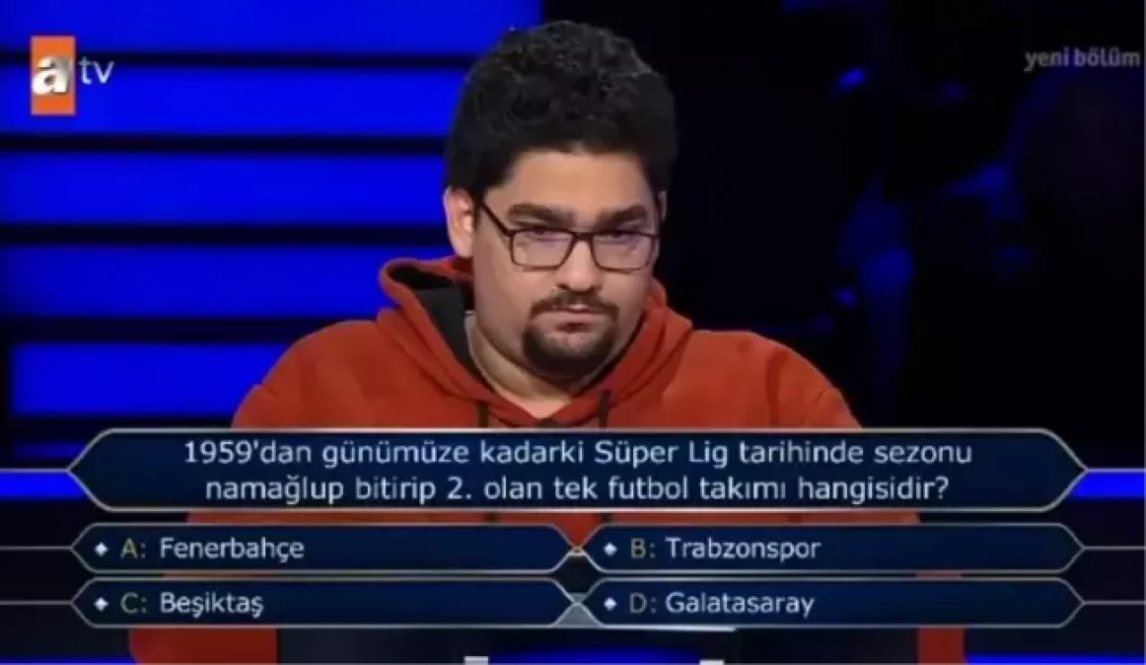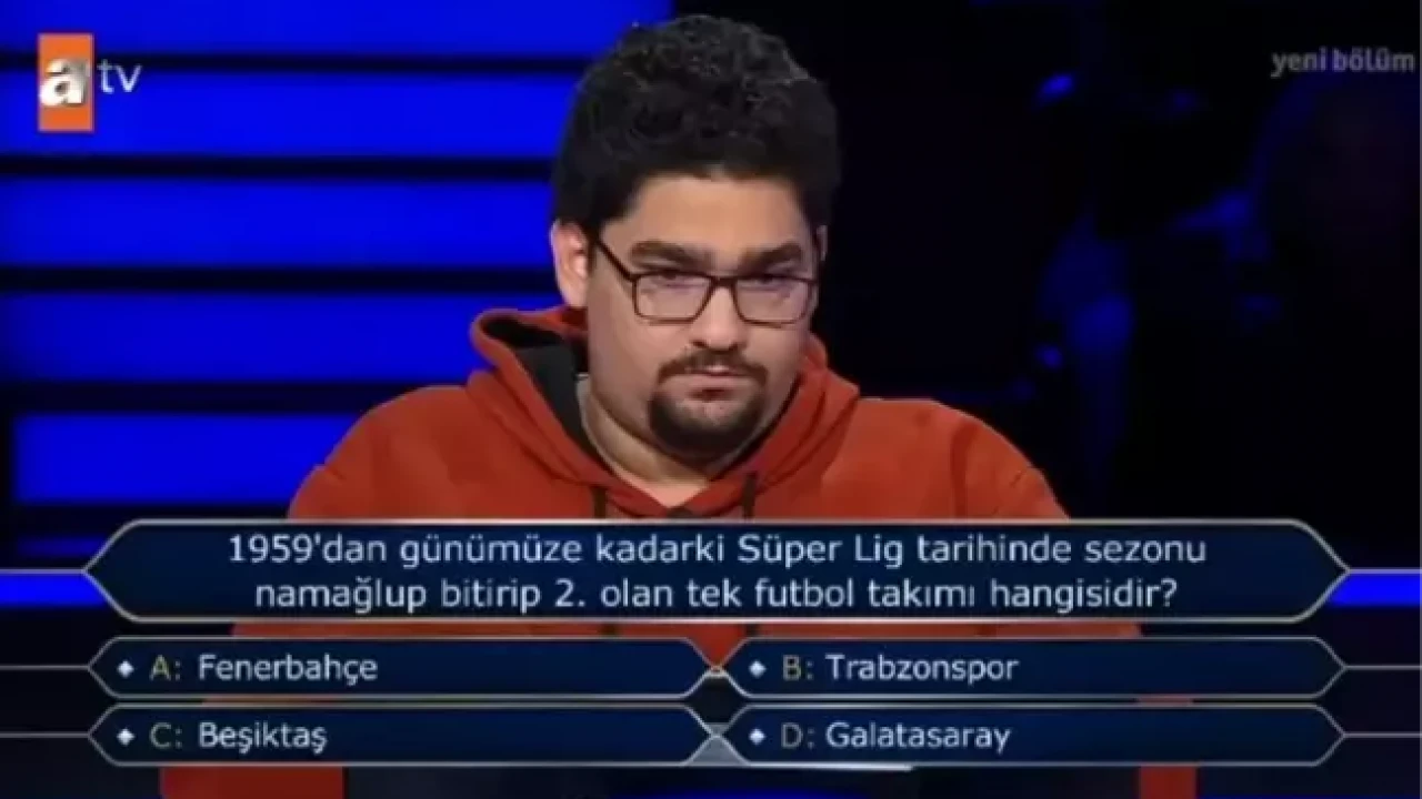 Kim Milyoner Olmak İster yarışmasında, Türk futbolunun tarihi hakkında dikkat çeken bir soru soruldu. Soru, 1959'dan günümüze kadarki Süper Lig tarihinde, sezonu namağlup bitirip 2. olan tek futbol takımı ile ilgiliydi. Sorunun cevabı merak konusu olurken, kimler bu soruyu doğru bildi? İşte Kim Milyoner Olmak İster yarışmasındaki o soru ve cevabı: