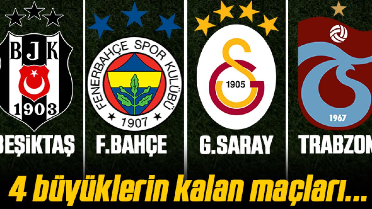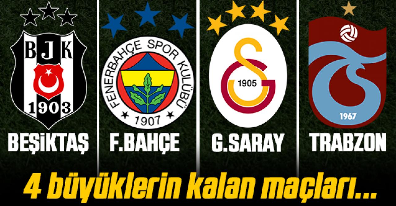 Şampiyonluk yarışında kritik bir hafta daha geride kaldı. Üç büyük takımın içerisinde yer aldığı rekabette Galatasaray Karagümrük'e 2 puan bırakınca fark da 8 puana yükseldi. Ayrıca Beşiktaş'ın da bir maçı eksik. Bunun yanısıra dün Gaziantep FK'yı yenen Fenerbahçe puanını 66 yaparak rakibinin ensesine yapıştı. Şu anda her şey siyah beyazlıların istediği gibi gidiyor. Abdullah Avcı ile yakaladığı çıkışı sürdüremeyen Trabzonspor da son 8 haftada 14 puan kaybedince Avrupa biletini elinde sıkı sıkı tutmak amcında. Peki, dört büyükler sezonun geri kalanında hangi takımlarla oynayacak? Beşiktaş, Fenerbahçe, Galatasaray ve Trabzonspor'un kalan maçları haberimizde yer alıyor.