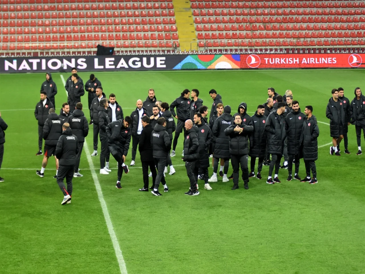 A Milli Futbol Takımı, UEFA Uluslar B Ligi 4. Grup’ta Galler ile oynayacağı kritik maç öncesinde Kayseri’ye geldi ve Kadir Has Stadyumu’nda yürüyüş gerçekleştirdi. Milli takım, Galler maçı için Kayseri Erkilet Havalimanı’ndan Kadir Has Stadyumu’na hareket etti. Maç hazırlıkları kapsamında stadyuma gelen milli futbolcular, saha zeminini inceleyerek yaklaşık 15 dakikalık bir yürüyüş yaptı.