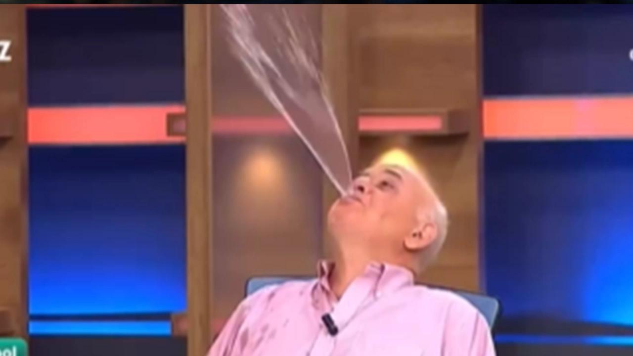 Galibiyeti farklı bir şekilde kutlamak isteyen Çakar, canlı yayında birdenbire ağzıyla su fışkırtmaya başladı. O anda karşısında oturan Sinan Engin ise duruma tepki göstermeden edemedi.