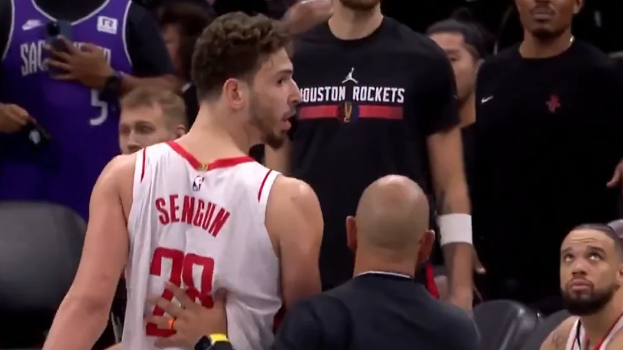 Houston Rockets’ın deplasmanda oynadığı Sacramento Kings maçının sonunda saha karıştı. Rockets’ta Alperen Şengün ve koç Ime Udoka oyundan atılırken, Udoka’nın hakemin üzerine yürüdüğü anlar kameralara yansıdı. Şengün’ün karar sonrasında hakeme tepki gösterdiği ve görevliler eşliğinde sahadan ayrıldığı anlar da görüntülendi.