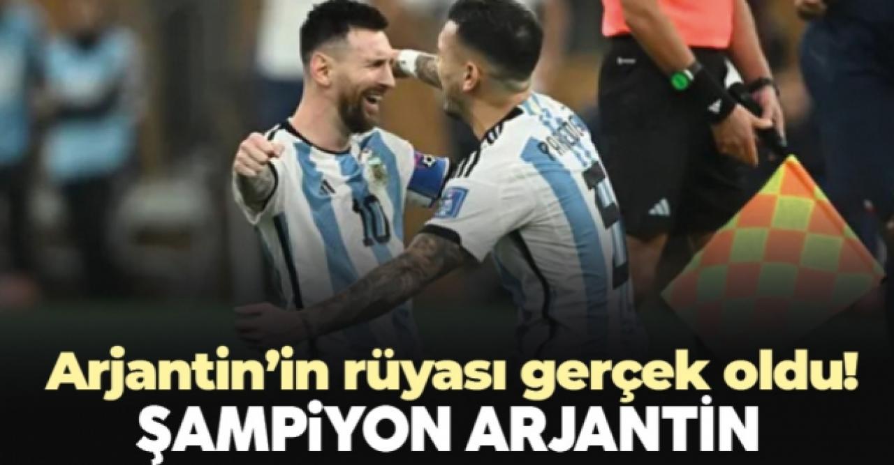 Dünya futboluna damga vuran Lionel Messi koleksiyonundaki en büyük eksiği sonunda tamamladı. Dev finalde Fransa’yı normal süresi 2-2 ve uzatmaları 3-3 biten maçta penaltılarla 4-2 mağlup eden Arjantin 36 yıllık hasretine son verdi, 3. kez dünyanın en büyüğü oldu. İlk yarıda Messi’nin penaltı golüyle 1-0 öne geçen ardından Di Maria ile farkı 2’ye çıkaran Arjantin’e 65. dakikaya kadar hiçbir varlık gösteremeyen Fransa sürpriz yaptı. Mbappe’nin 80 ve 81’de gelen golleri sonrası maç uzatmaya gitti. 109. dakikada Messi bir kez daha sahneye çıktı. 118’de Fransa bir kez daha penaltı kazandı, Mbappe maçtaki 3. golünü atarak maçı penaltılara götürdü. Penaltılarda 4-2 kazanan Arjantin kupanın sahibi oldu.