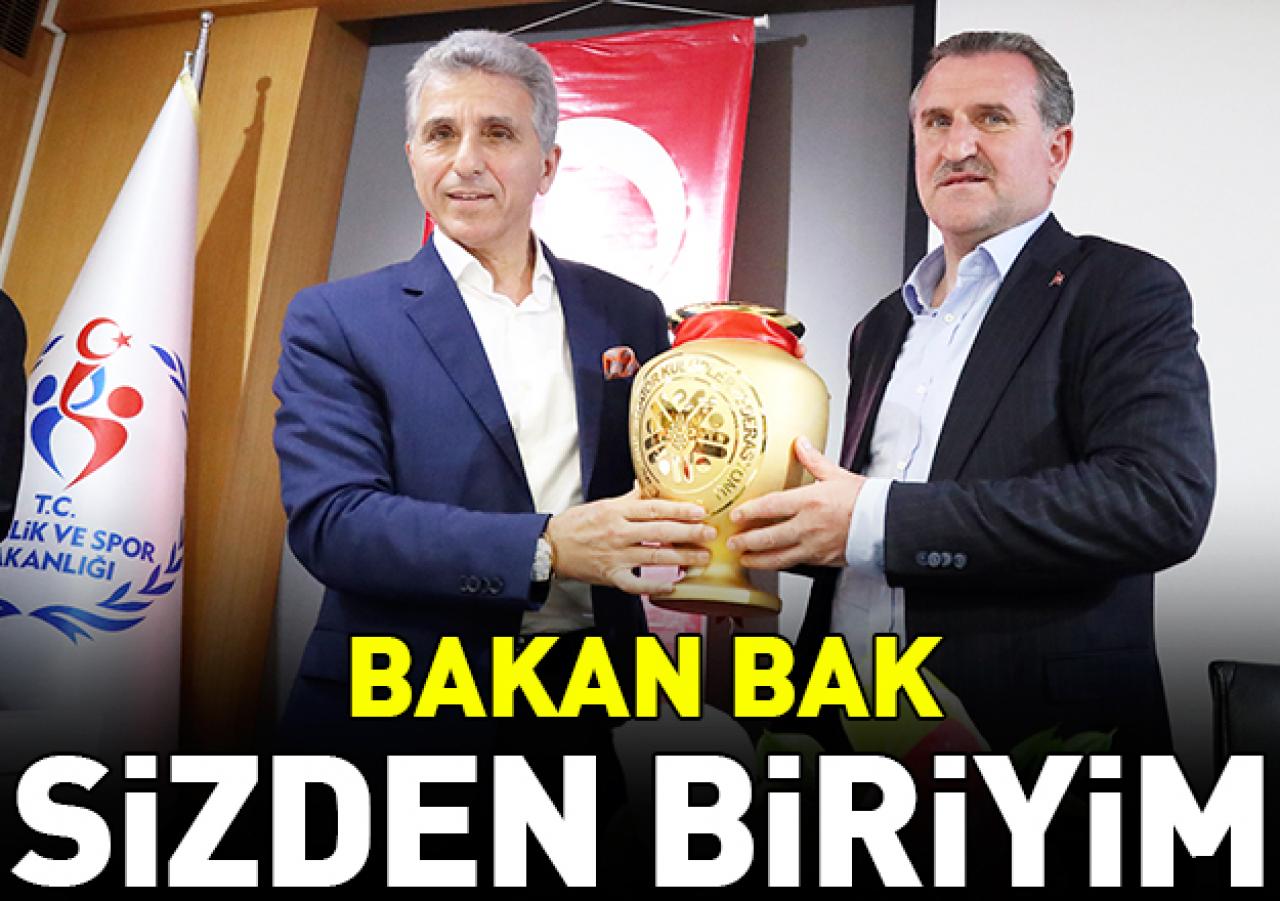 Toplantıda kulüp Başkanlarına ve yöneticilere hitaben konuşma yapmak için sahneye çıkan Gençlik ve Spor Bakanı Osman Aşkın Bak aranızdan biriyim diyerek konuşmasına başladı. Bakan Bak “ Bu amatör evine bakan olduktan sonra iki veya 3 gelişim ama bu ilk defa bu kadar kalabalık spor kulübü Başkanları ve yöneticileri ile birlikte oluyorum. Bundan dolayı çok mutluyum. Bu binanın yapımında bulunmaktan ayrıca memnuniyetimi dile getirmek istiyorum. İçinizden biriyim, sizden biriyim çünkü bende amatör spor kulüplerinde başkanlık ve yöneticilik yaptım. Hatta şuanda bile birlikte çalıştığımız kişilerle göz göze geliyorum ve onların da burada görmekten çok sevinçliyim. Birlikte çalışıp ta aramızda olamayan hayatını kaybeden birçok ağabeyimiz var. Onlara da buradan Allah’tan rahmet diliyorum. Amatör spor kulübü başkanları ve yöneticileri benim için birer kahramandır. Onlar gençlerimizi kötü yollara düşmesinler, kötü alışkanlıklar edinmesinler diye gecelerini, gündüzlerine katarak çalışıyorlar. Benim için bu arkadaşlar kahramandır. Bende spor yapmanın karşılığını aldım. Eğer o dönemlerde benimde elimden tutmasalarda, eğer beni de spor’a yönlendirmeselerdi ben beklide karşısında bir Bakan olmayacaktım. Nerede ve ne olduğum belli bile olmayacaktı. Spor’un birleştirici özelliğinin yanı sıra her kötülüğün karşısında olmasından dolayı ayrıca mutluyum. Yöneticilik yaptığım dönemlerde hem Amatör federasyonda görev yapmış olmaktan da ayrıca mutluyum. Bundan dolayı içinizden, aranızdan biriyim diyorum” dedi.