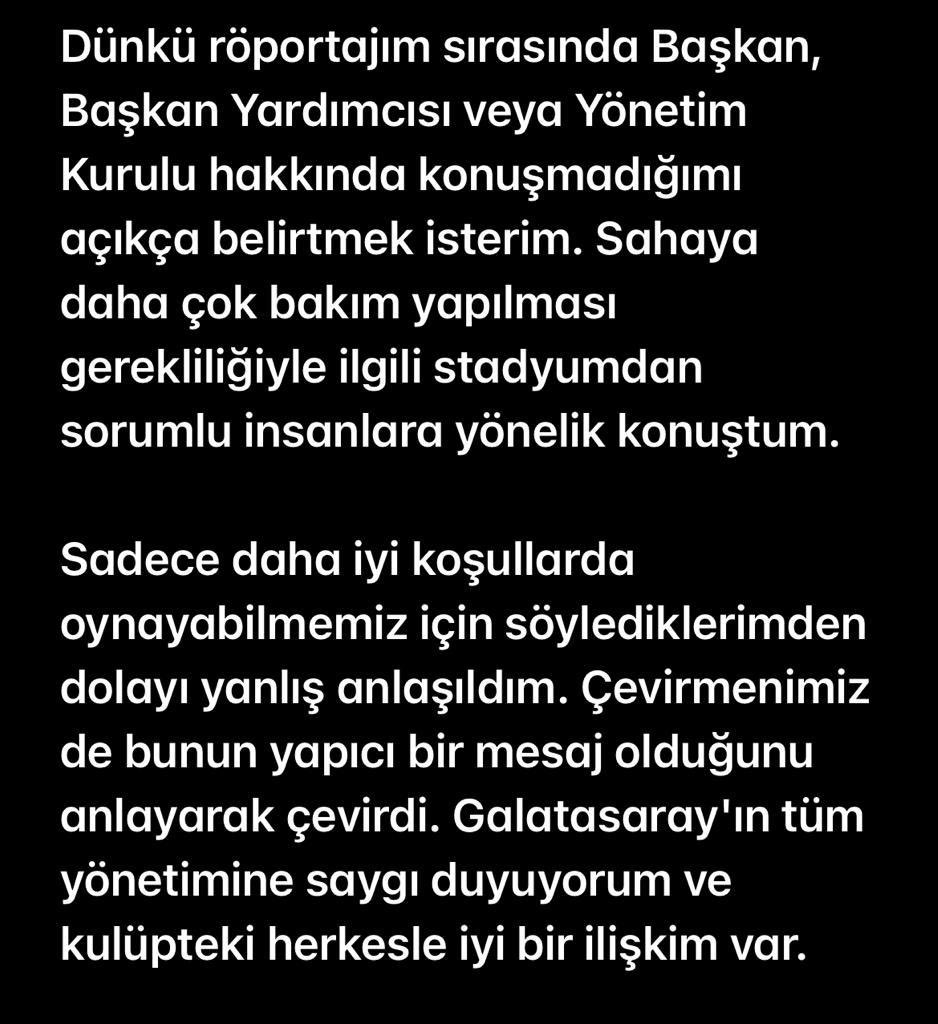 Younes Belhanda, "Sadece daha iyi koşullarda oynayabilmemiz için söylediklerimden dolayı yanlış anlaşıldım. Galatasaray'ın tüm yönetimine saygı duyuyorum ve kulüpteki herkesle iyi bir ilişkim var" ifadelerini kullandı.